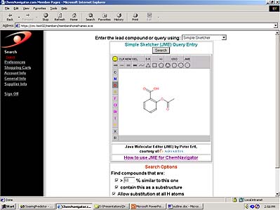 ChemNavigator serves as a portal for lead expansion compound suppliers, but to practicing chemists it is much more than that. ChemNavigator offers, to anyone with a Web browser, sophisticated but easy-to-use structure-based searching from its suppliers' compound libraries.