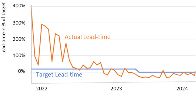- Regular management reporting focuses on continuous improvement initiatives and their impact on reducing overall lead time.