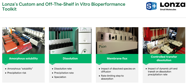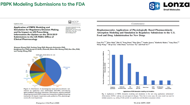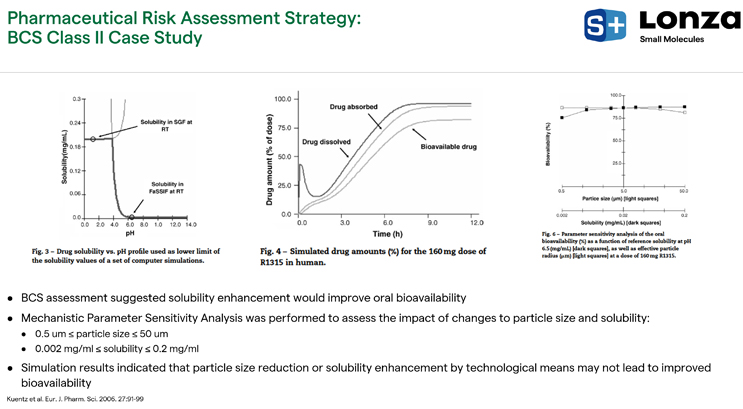 Our service offerings include three components. First is the established ADMET Predictor® and GastroPlus® modeling software, which is validated and prevalent across the industry. Lonza also offers an expansive set of custom and off-the-shelf in vitro performance tests that are powerful for generating those inputs into the PBPK models. Lonza has vast experience with API synthesis, solubility enhancement, and formulation development, including having worked on over 10 amorphous solid dispersions that have progressed to the market, and over 20 patent families in amorphous or spray dry dispersion technology. In 2022, Lonza assessed 230 therapies in clinical development and supported about 140 commercial-scale small molecule projects.